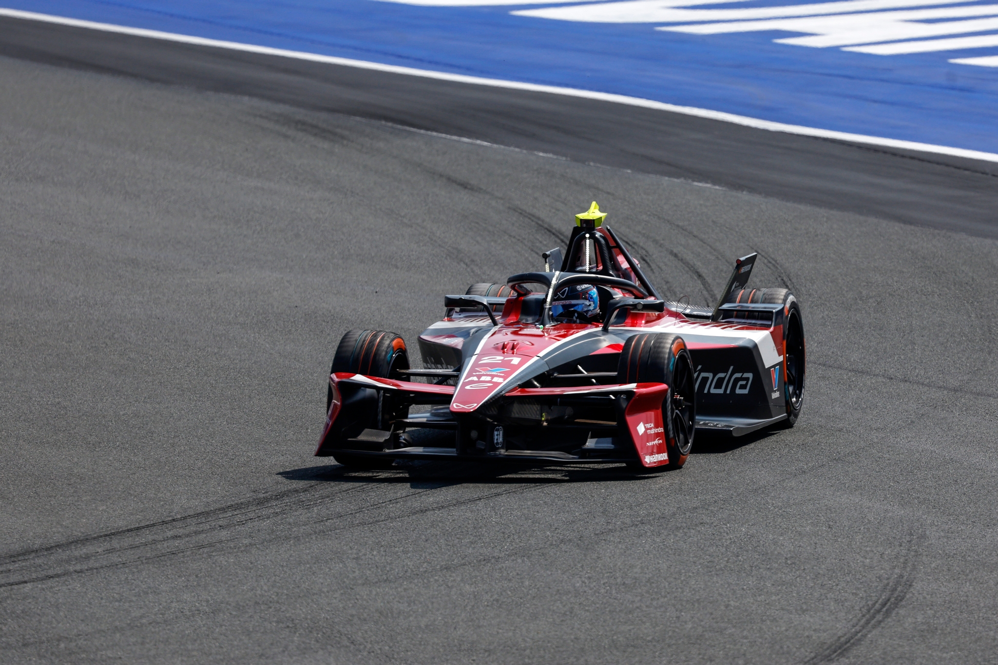 JEDDAH, SAUDI ARABIA - FEBRUARY 14: Nyck de Vries of the Netherlands driving the (21) Mahindra Racing Mahindra M12Electro on track during practice, ahead of the Jeddah E-Prix, Round 5 of the 2026 FIA Formula E World Championship at Jeddah Corniche Circuit on February 14, 2026 in Jeddah, Saudi Arabia. (Photo by Jordan McKean/LAT Images)