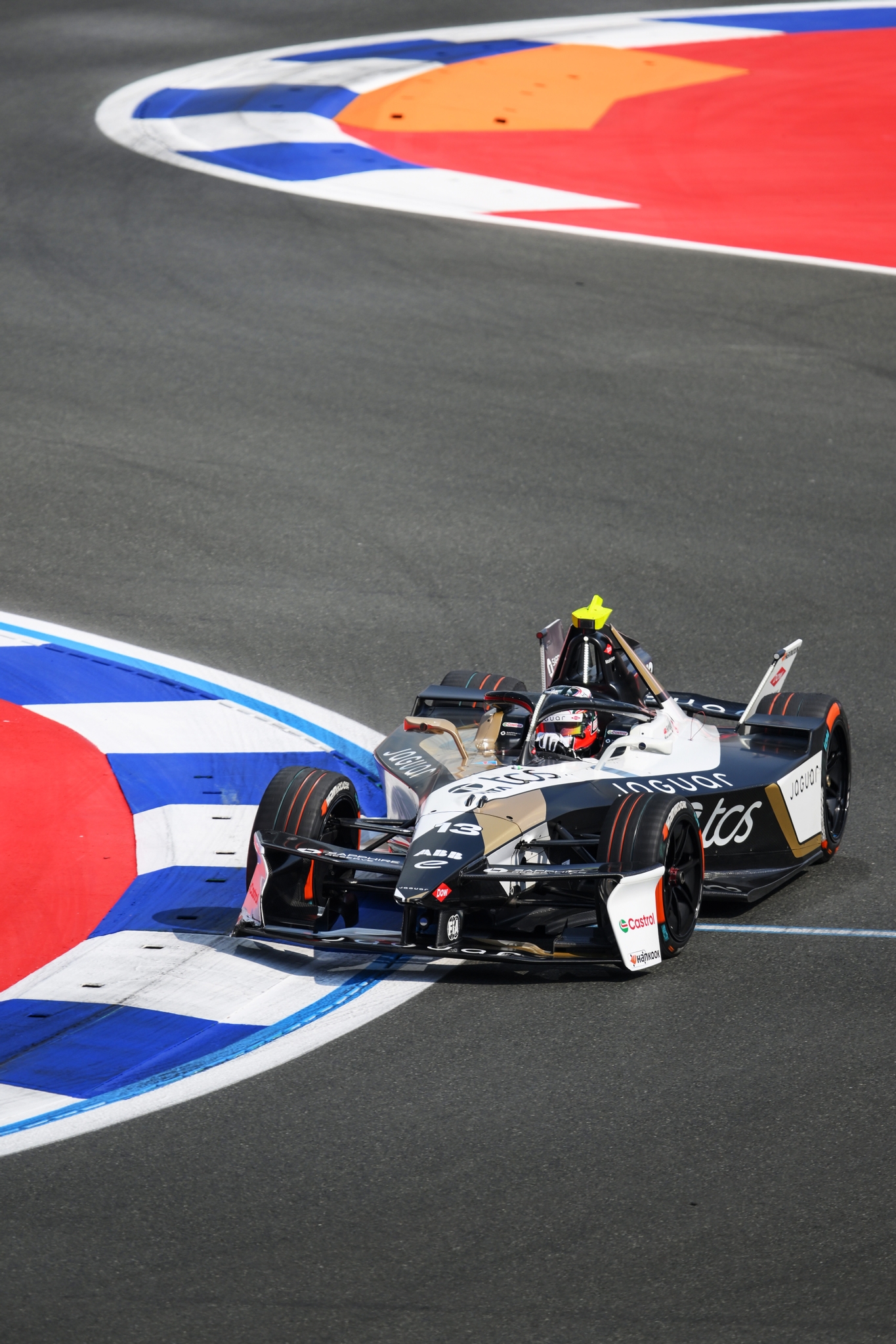 JEDDAH, SAUDI ARABIA - FEBRUARY 14: Antonio Felix da Costa of Portugal driving the (13) Jaguar TCS Racing Jaguar I-TYPE 7 on track during practice, ahead of the Jeddah E-Prix, Round 5 of the 2026 FIA Formula E World Championship at Jeddah Corniche Circuit on February 14, 2026 in Jeddah, Saudi Arabia. (Photo by Simon Galloway/LAT Images)