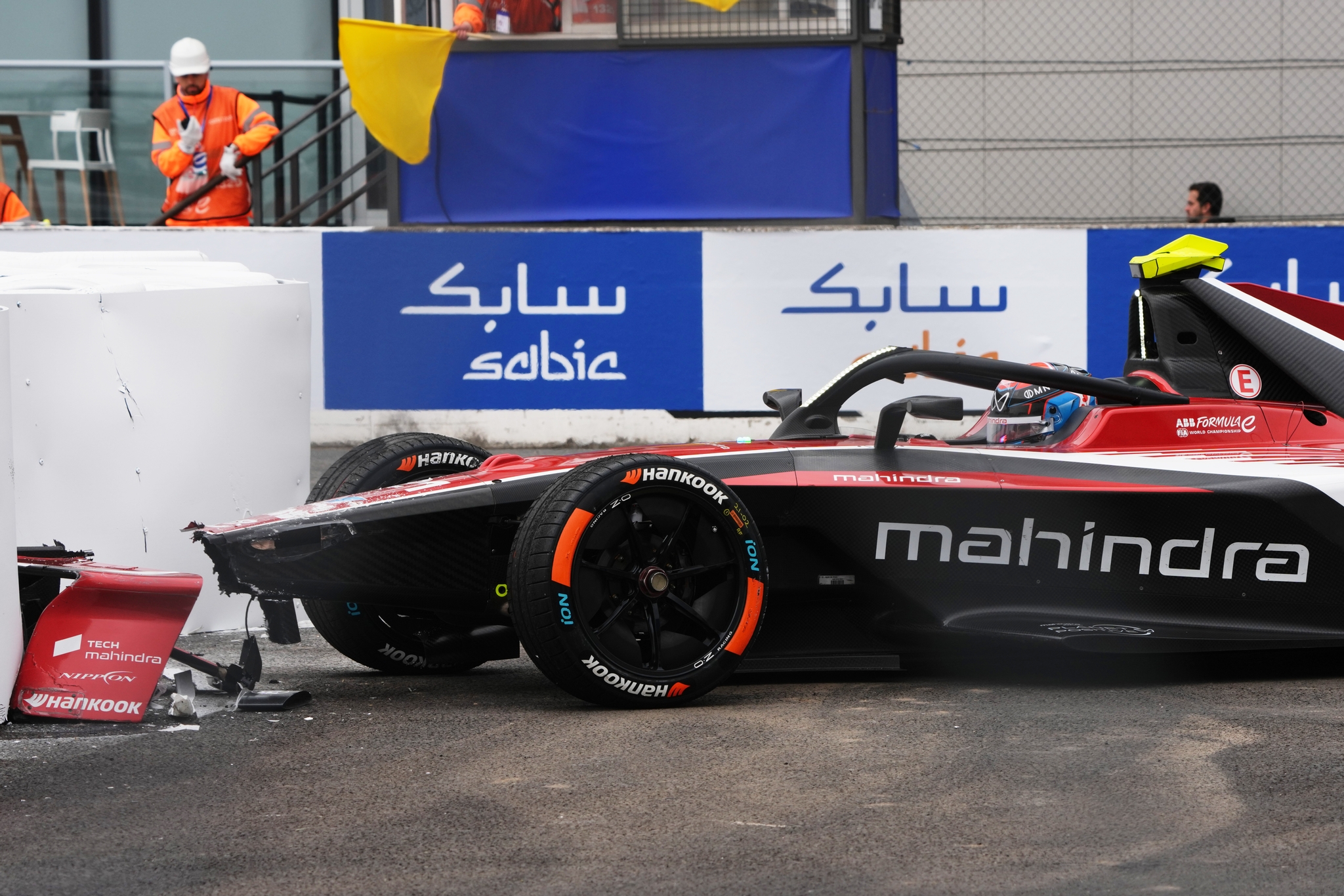 MADRID, SPAIN - MARCH 20: Nyck de Vries of the Netherlands driving the (21) Mahindra Racing Mahindra M12Electro hits the wall during practice, ahead of the Madrid E-Prix at Circuito del Jarama on March 20, 2026 in Madrid, Spain. (Photo by Malcolm Griffiths/LAT Images)