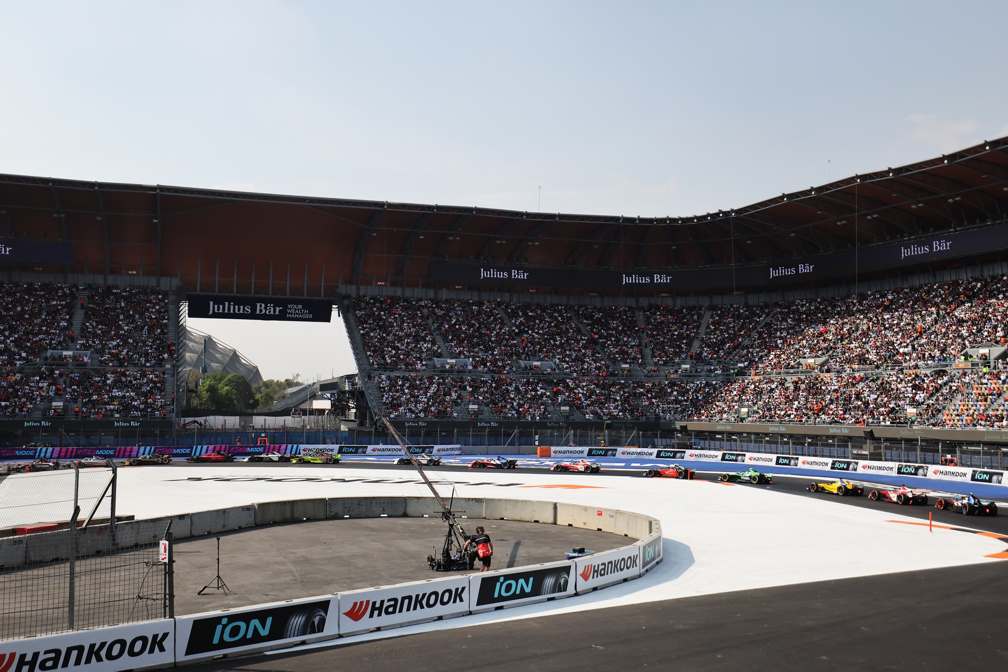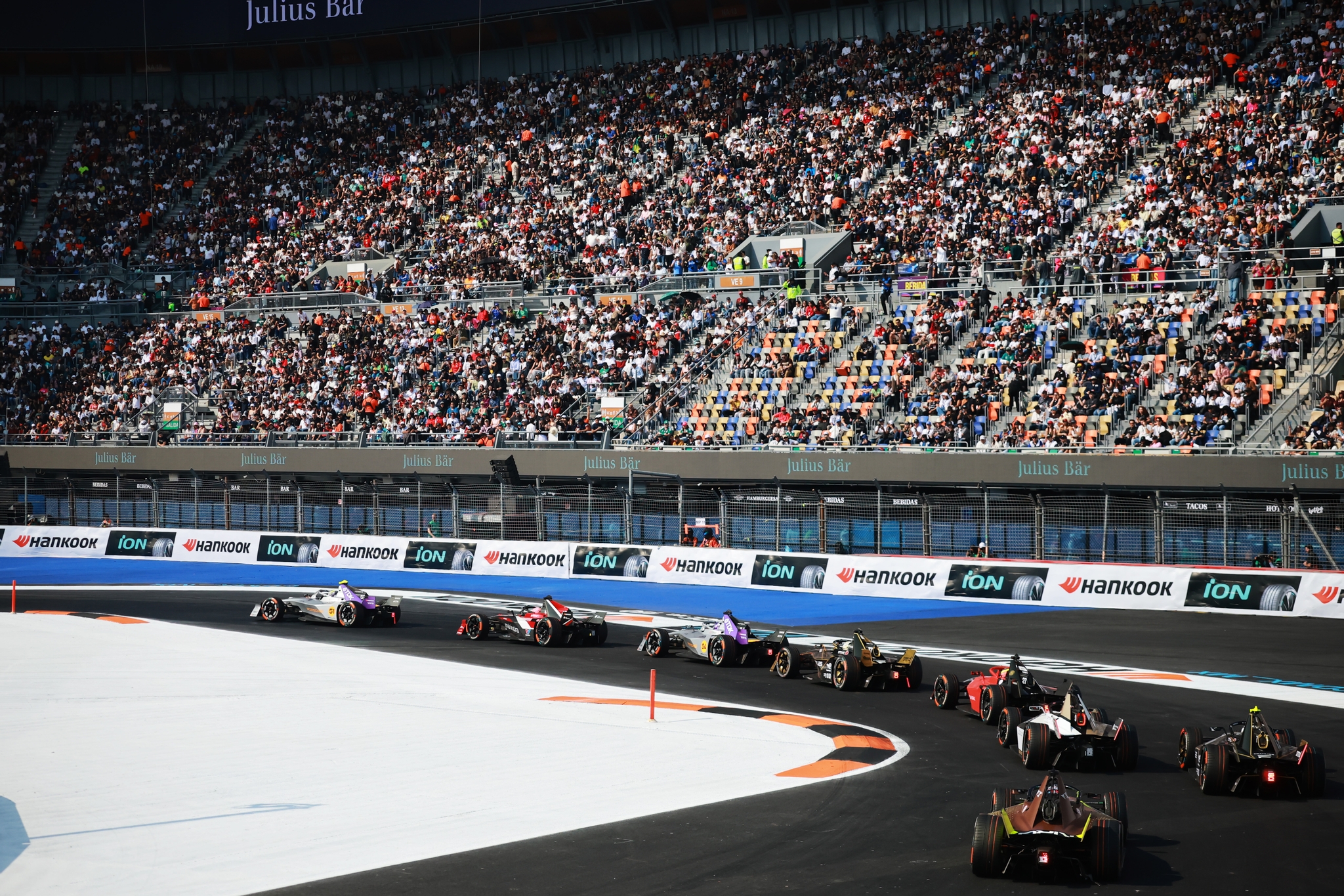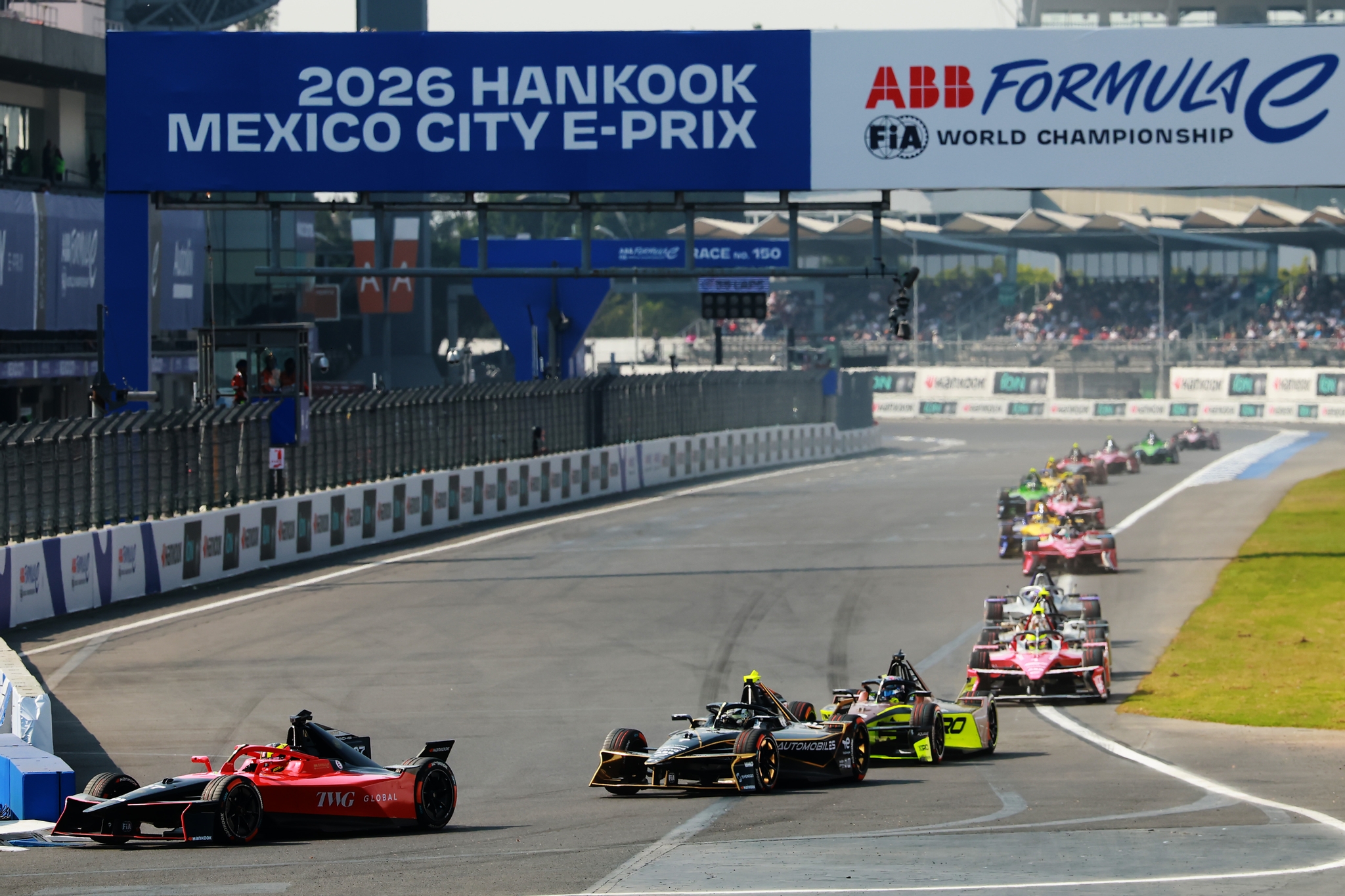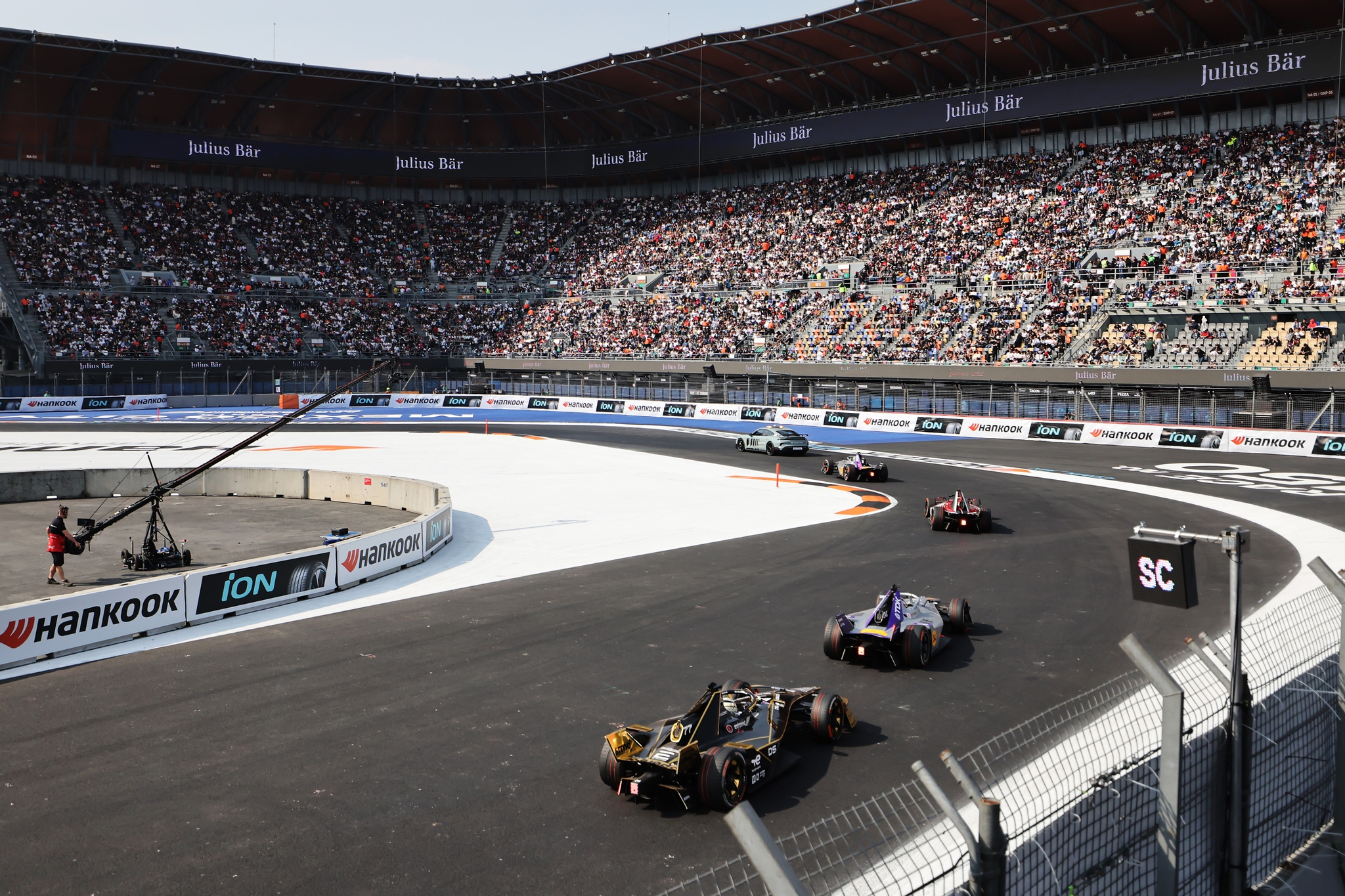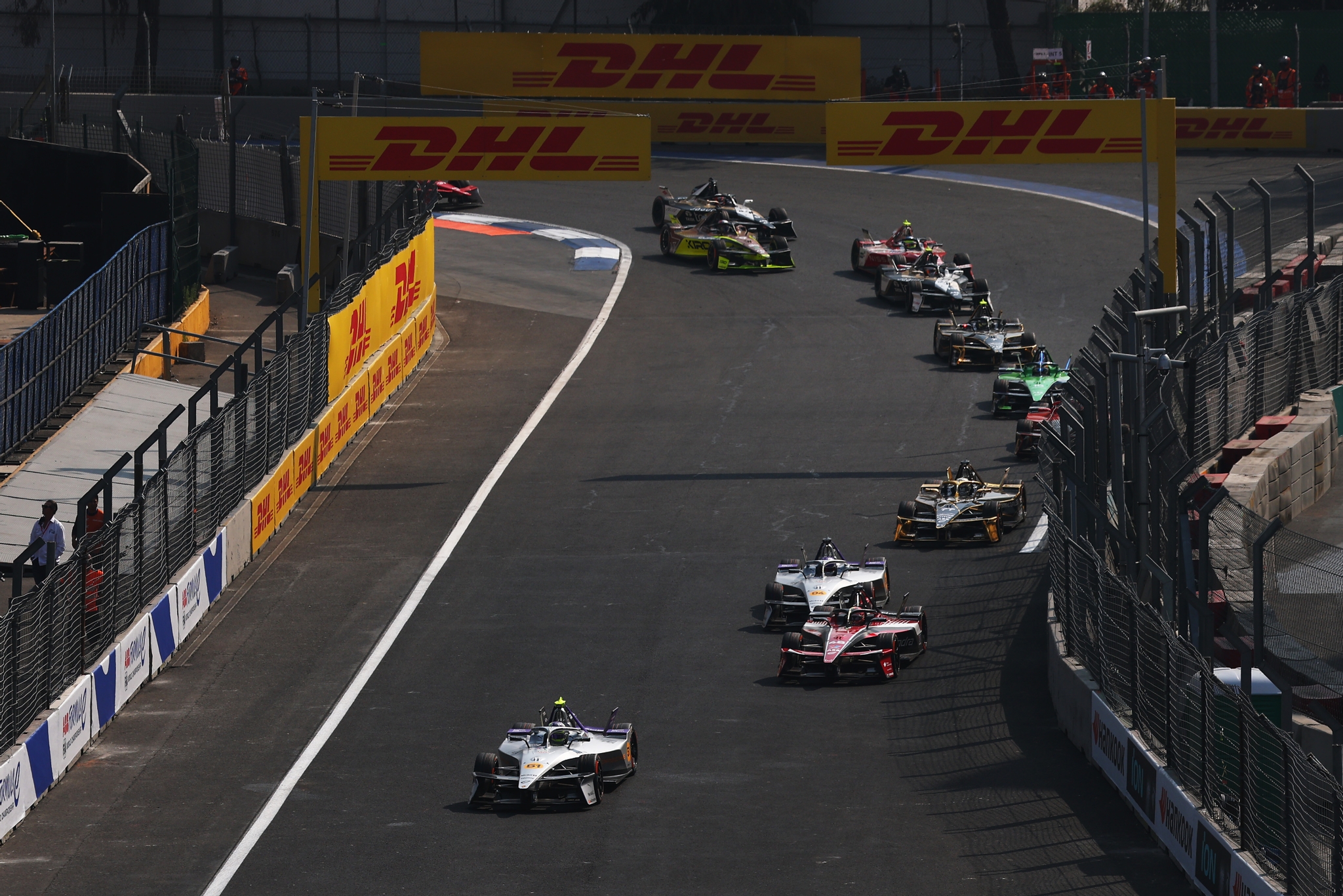 MEXICO CITY, MEXICO - JANUARY 10: The FIA Safety Car leads the field during the Mexico City E-Prix at Autodromo Hermanos Rodriguez on January 10, 2026 in Mexico City, Mexico. (Photo by Zak Mauger/LAT Images)