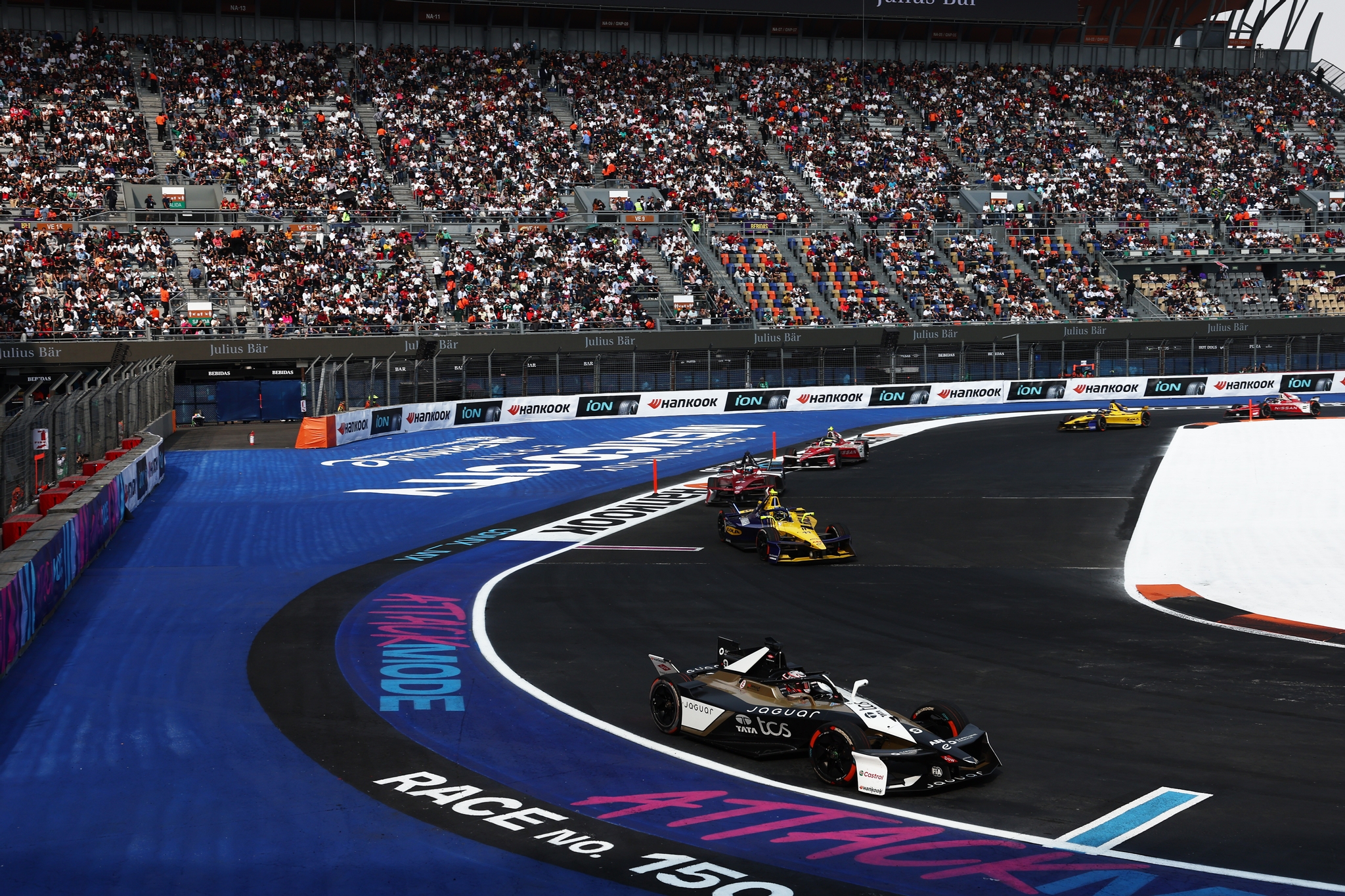 MEXICO CITY, MEXICO - JANUARY 10: Antonio Felix da Costa of Portugal driving the (13) Jaguar TCS Racing Jaguar I-TYPE 7 takes Attack Mode during the Mexico City E-Prix at Autodromo Hermanos Rodriguez on January 10, 2026 in Mexico City, Mexico. (Photo by Simon Galloway/LAT Images)