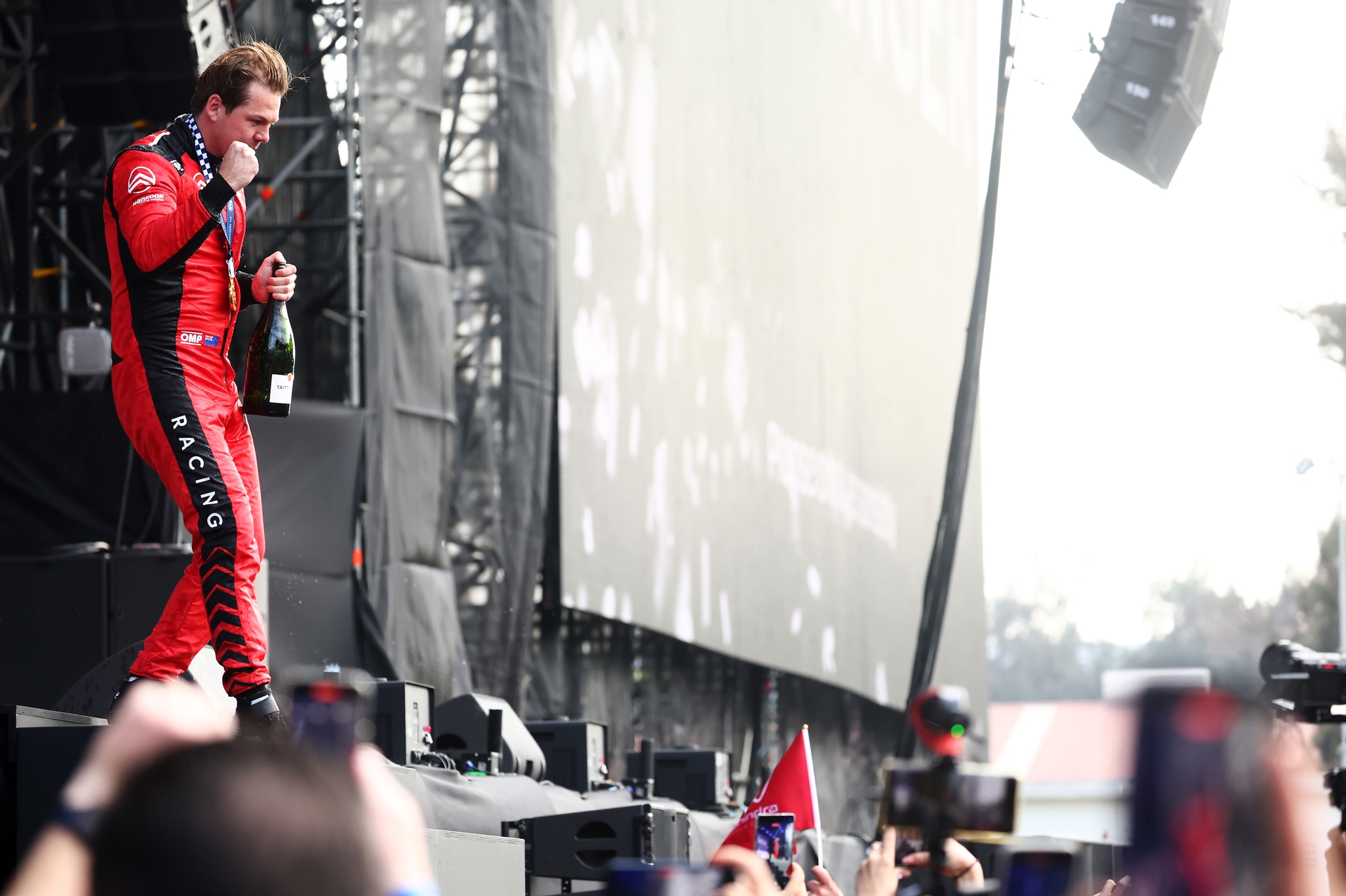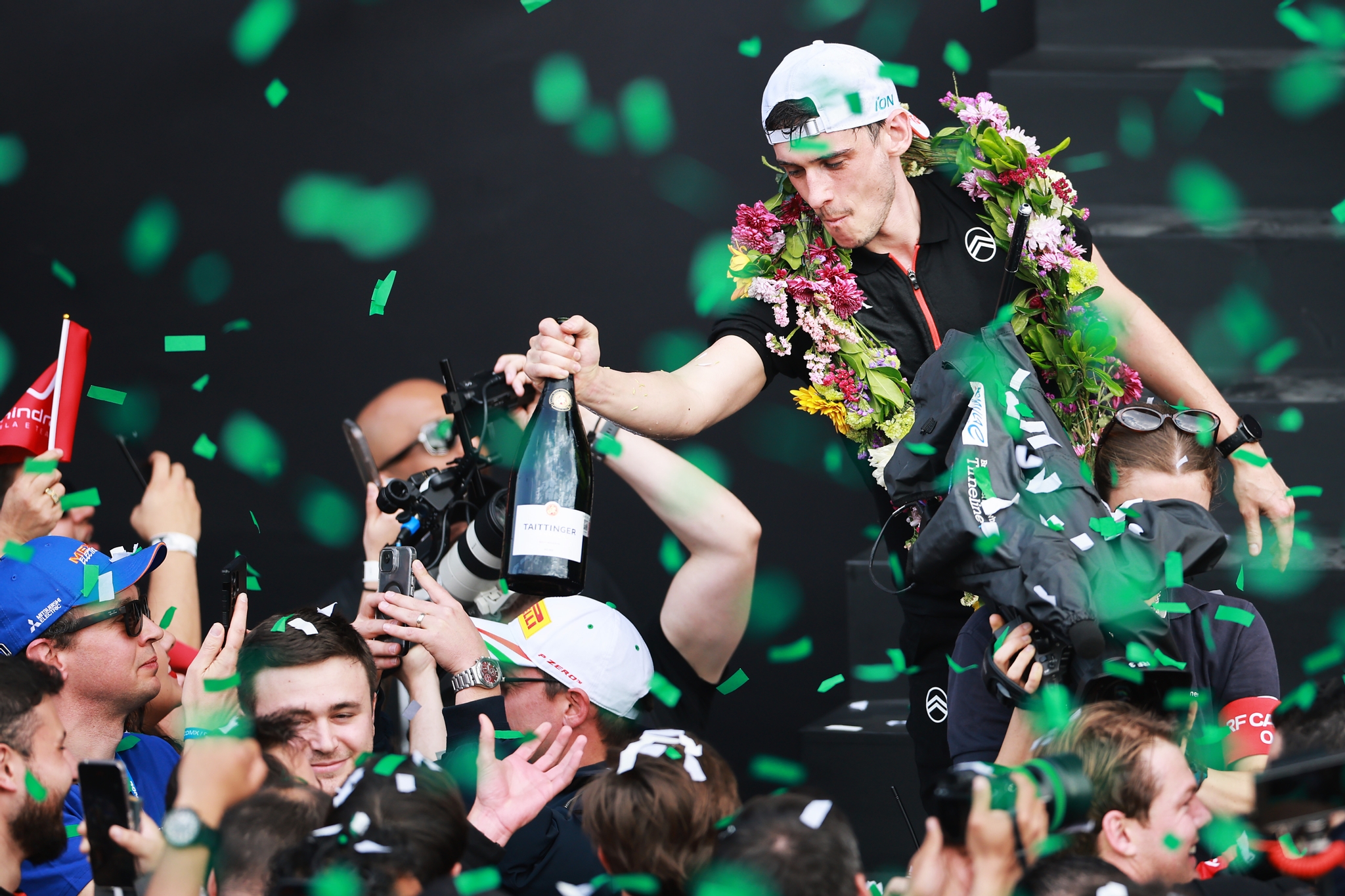 MEXICO CITY, MEXICO - JANUARY 10: Pierre Paul Fery, Race Engineer of Citroen Racing celebrates on the podium during the Mexico City E-Prix at Autodromo Hermanos Rodriguez on January 10, 2026 in Mexico City, Mexico. (Photo by Hector Vivas/LAT Images)