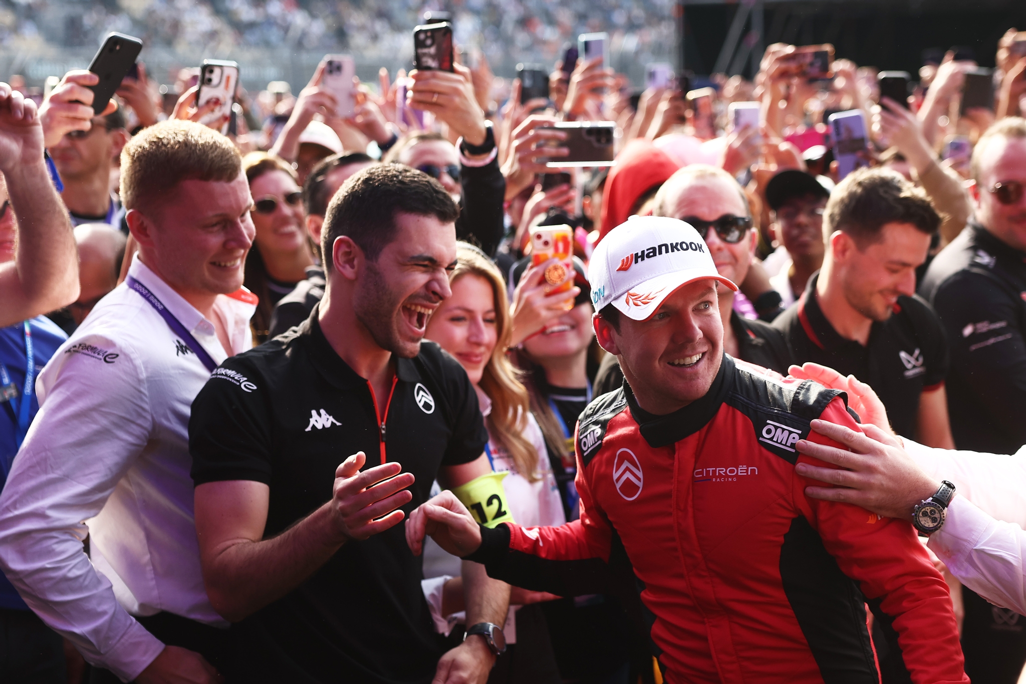 MEXICO CITY, MEXICO - JANUARY 10: Race winner Nick Cassidy of New Zealand and Citroen Racing celebrates with his team at the podium during the Mexico City E-Prix at Autodromo Hermanos Rodriguez on January 10, 2026 in Mexico City, Mexico. (Photo by Zak Mauger/LAT Images)
