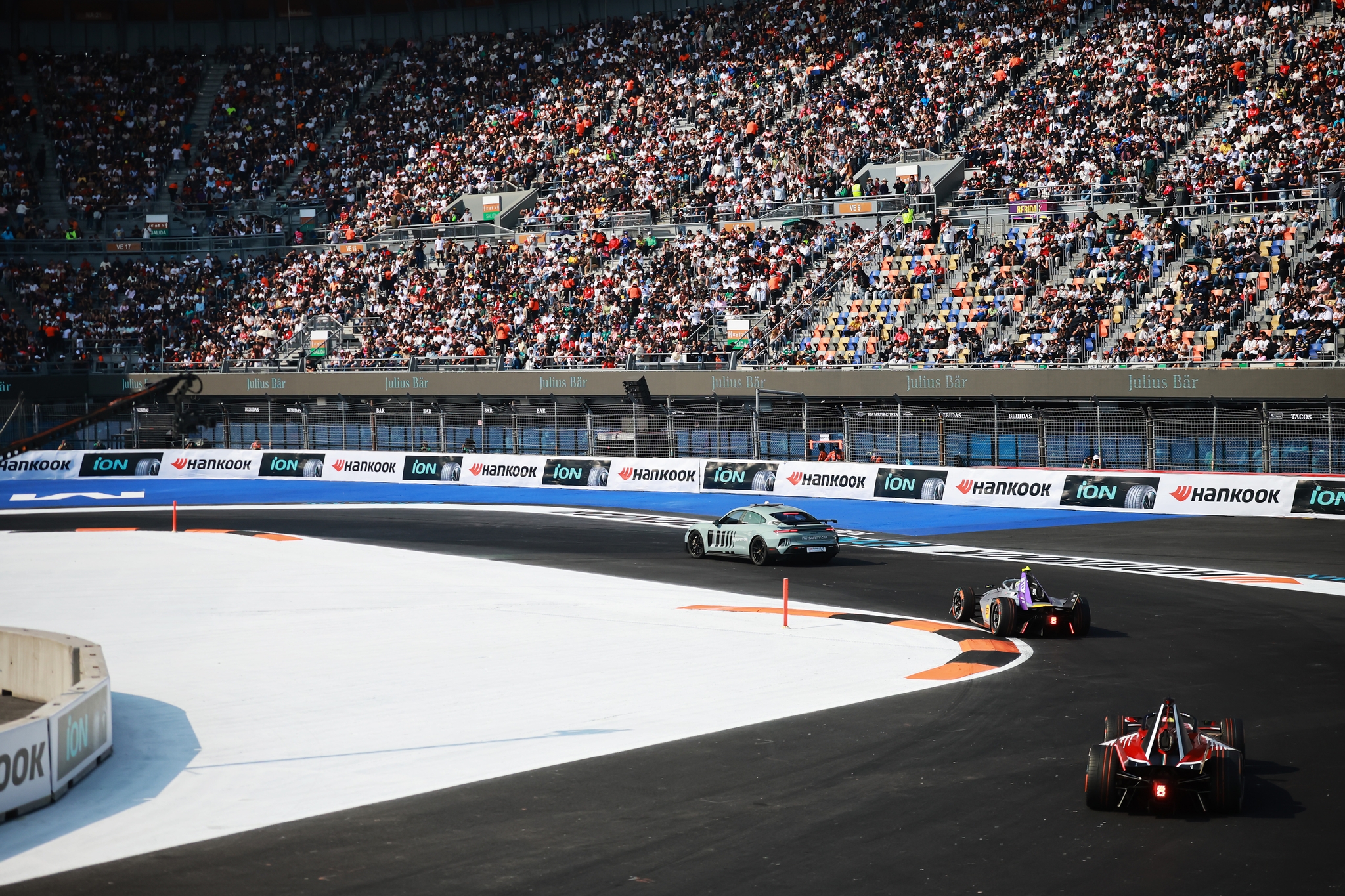 MEXICO CITY, MEXICO - JANUARY 10: The FIA Safety Car leads the field during the Mexico City E-Prix at Autodromo Hermanos Rodriguez on January 10, 2026 in Mexico City, Mexico. (Photo by Hector Vivas/LAT Images)