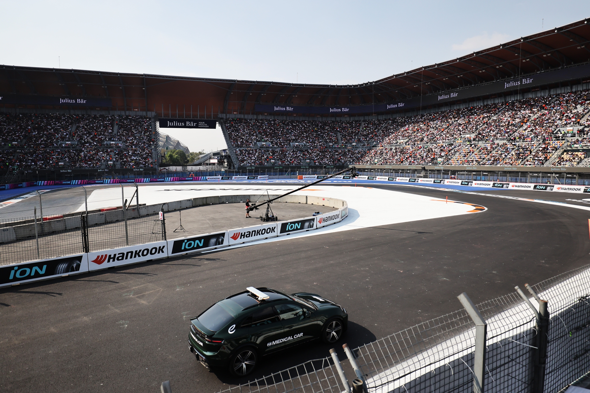 MEXICO CITY, MEXICO - JANUARY 10: The FIA Safety Car on track during the Mexico City E-Prix at Autodromo Hermanos Rodriguez on January 10, 2026 in Mexico City, Mexico. (Photo by Simon Galloway/LAT Images)